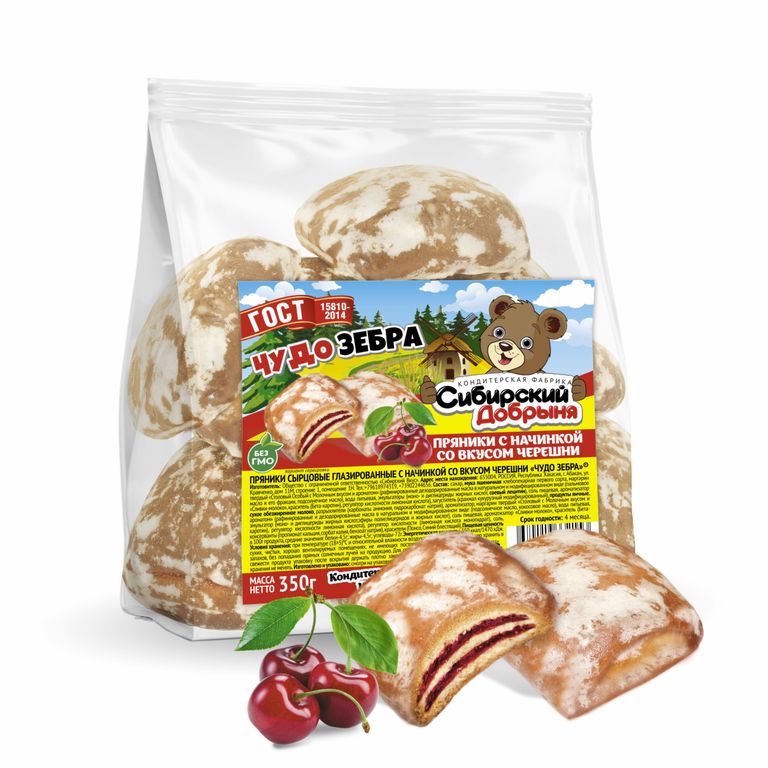 Пряники с прослойками со вкусом черешни «Чудо Зебра» Оформить заказ Пряники с насыщенным сливочным вкусом с прослойками со вкусом черешни, покрытые сахарной глазурью. Пряники с насыщенным сливочным вкусом с прослойками со вкусом черешни, покрытые сахарной глазурью. Описание Описание